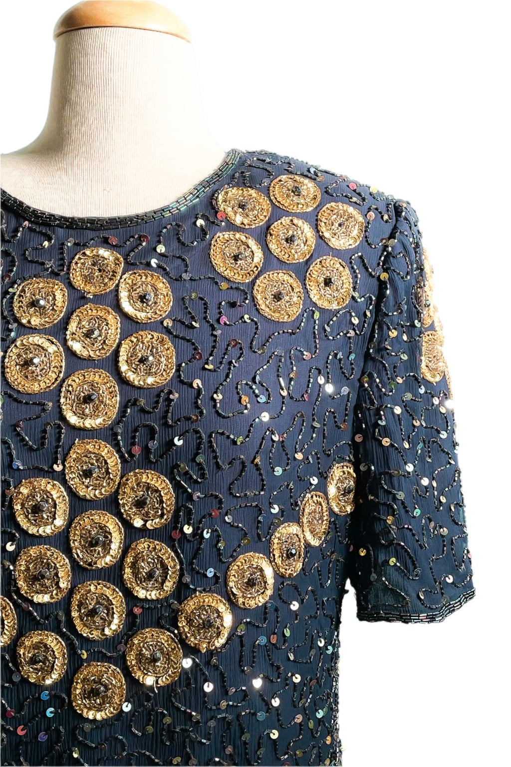 Beautiful vintage silk beaded/sequin top with Art Deco influence.