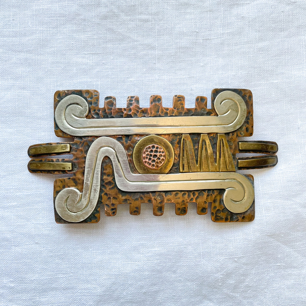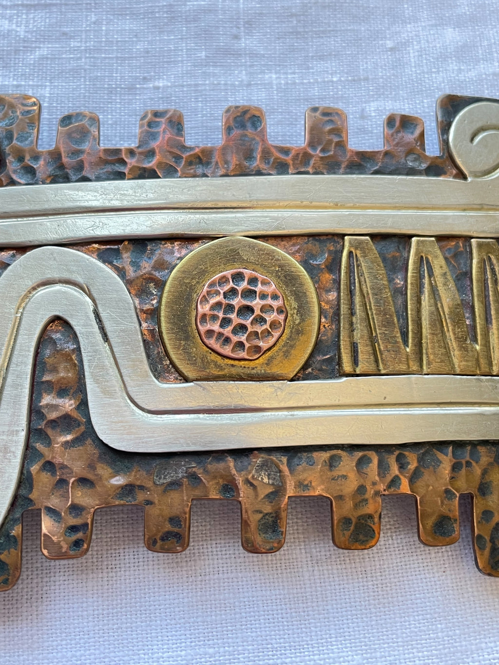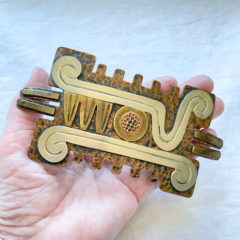 Vintage mixed metal belt buckle from Casa Maya Mexico.