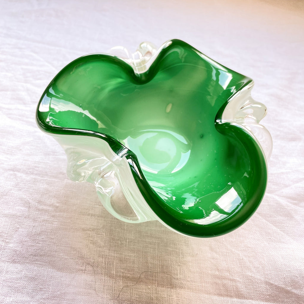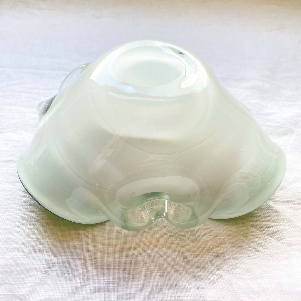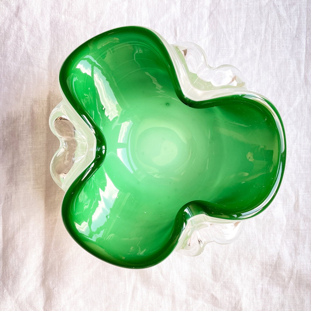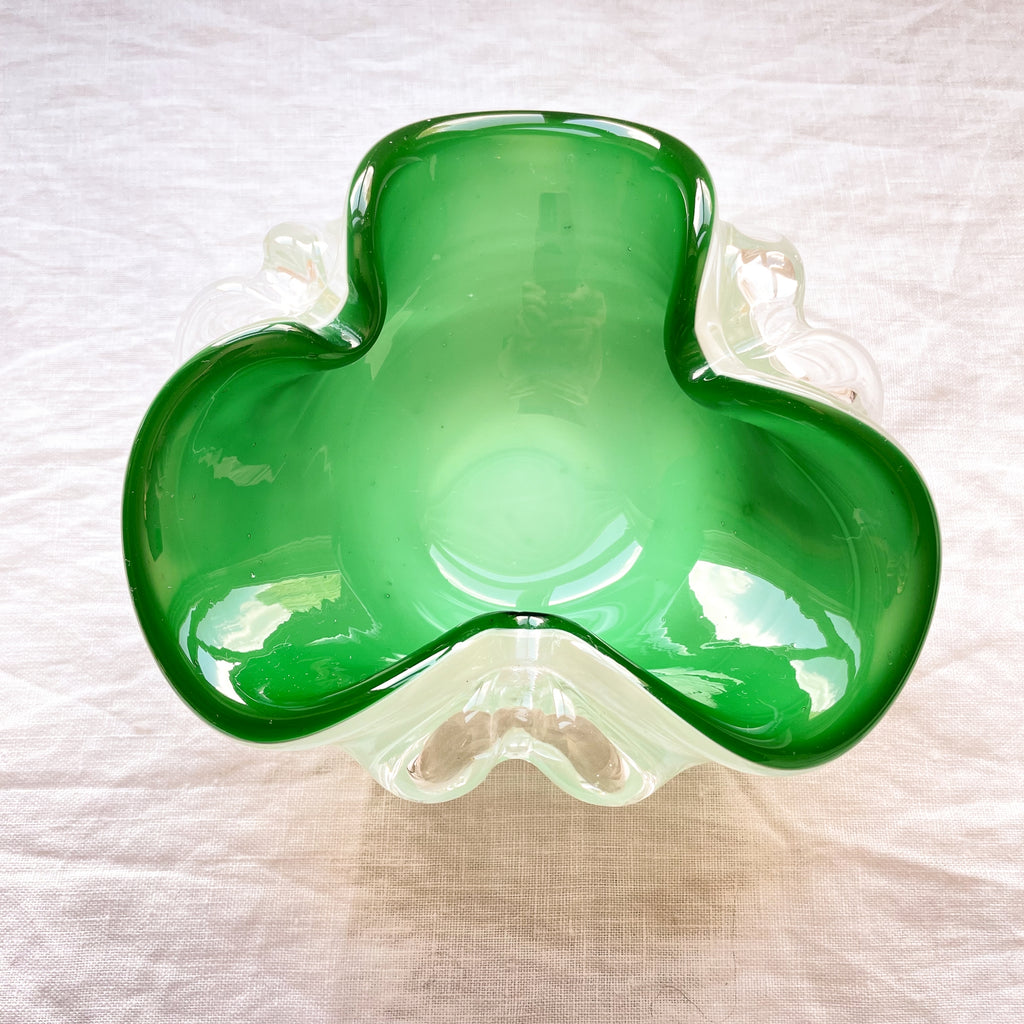 Vintage MCM Blown Glass Ashtray Small Bowl, Green White Collectible Art Glass
