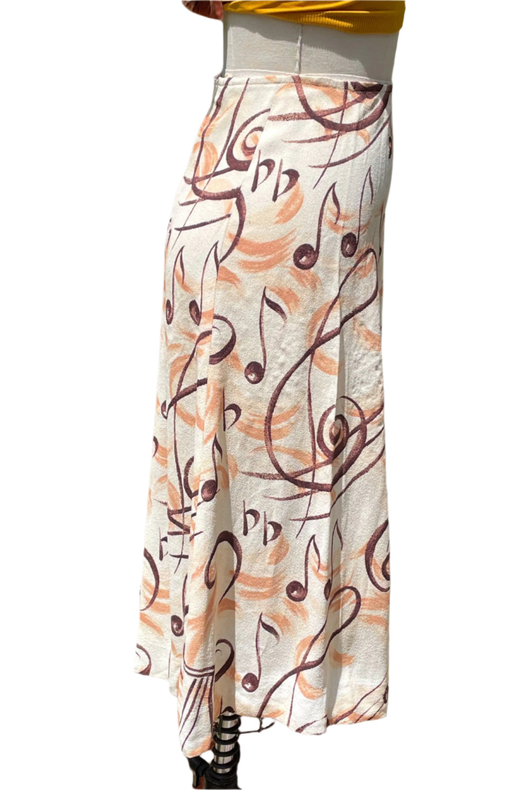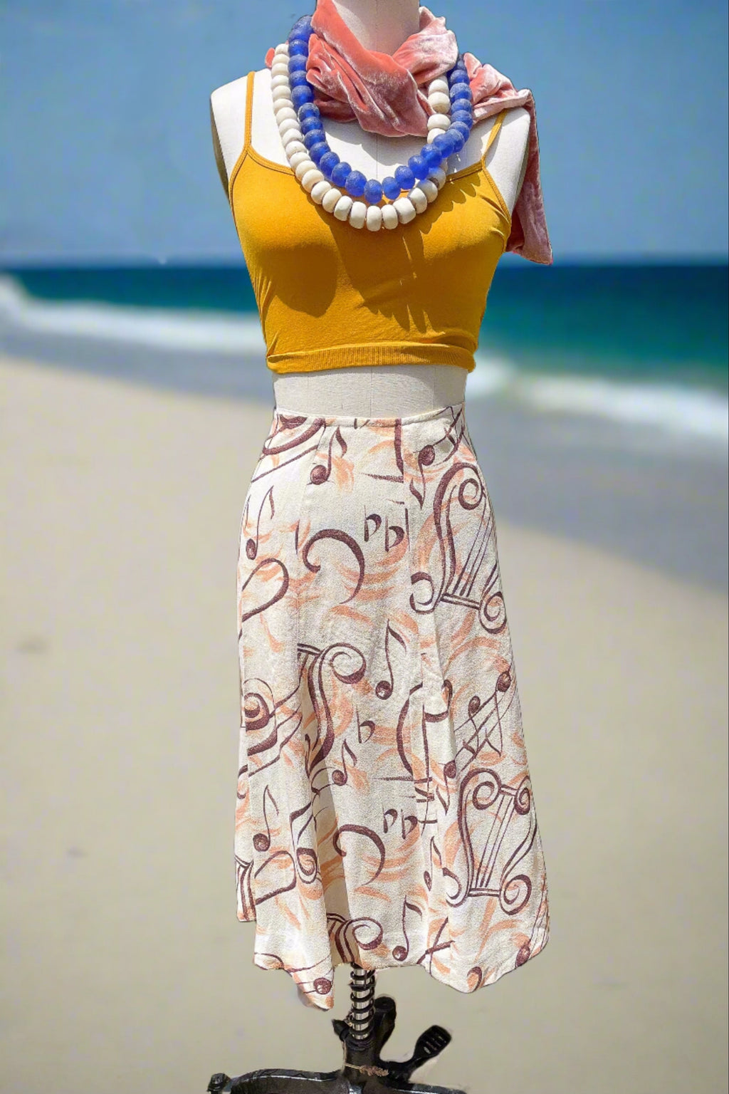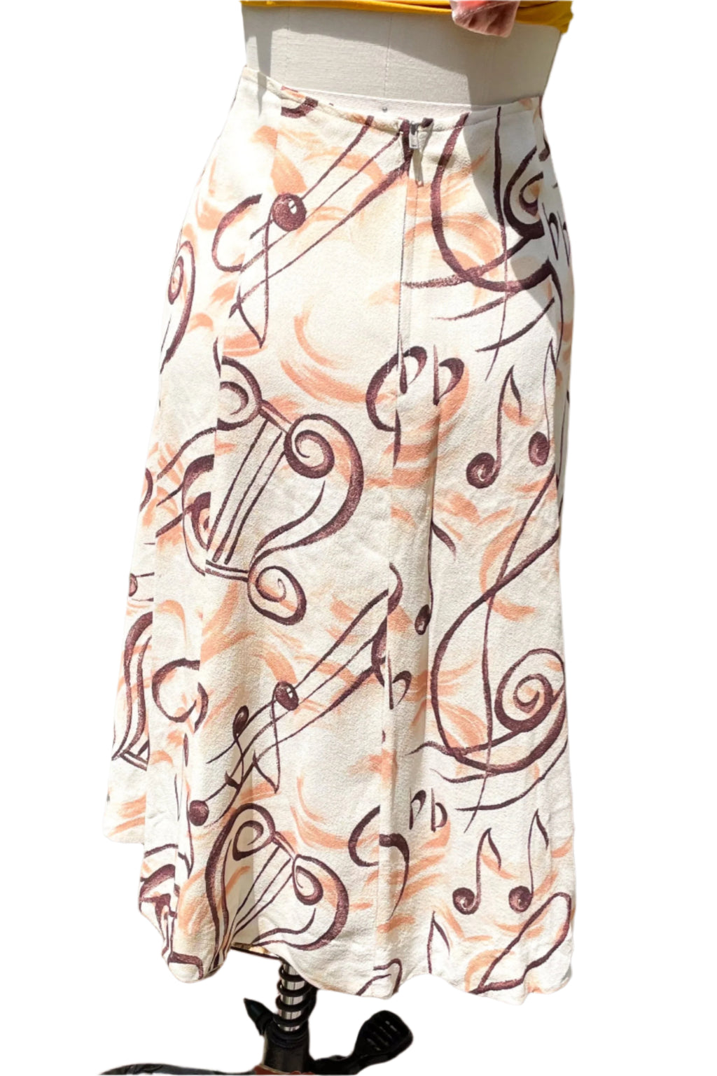 Vintage Music Note Crepe Skirt, Novelty Rockabilly Skirt 25" Waist
