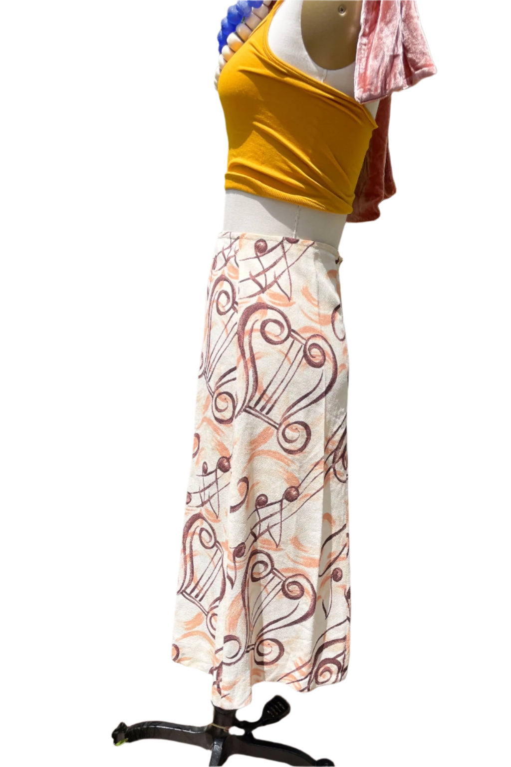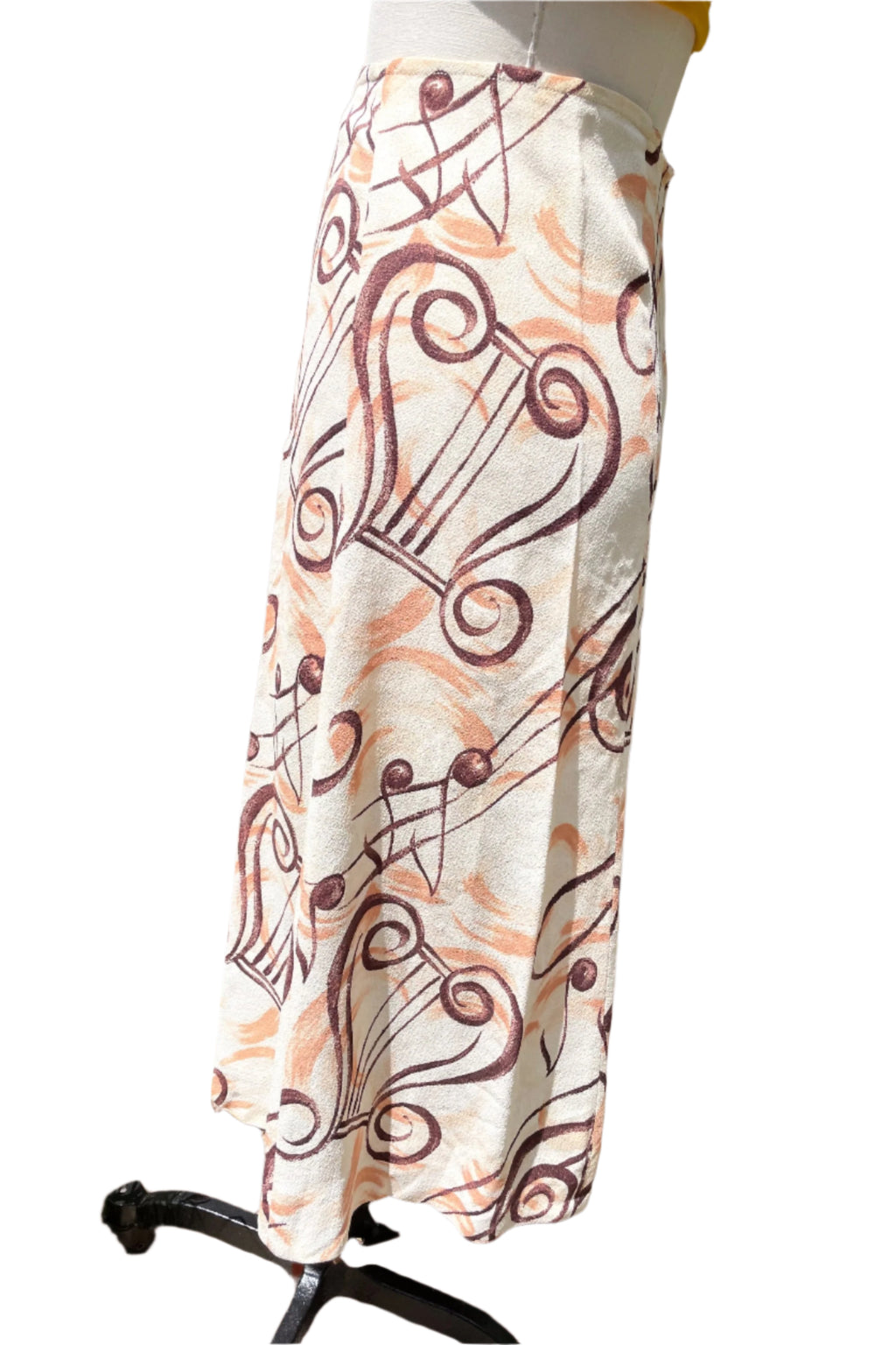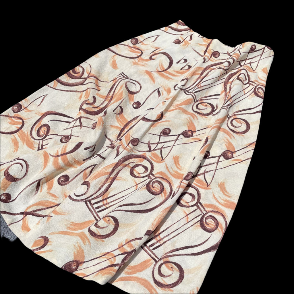 Vintage Music Note Crepe Skirt, Novelty Rockabilly Skirt 25" Waist