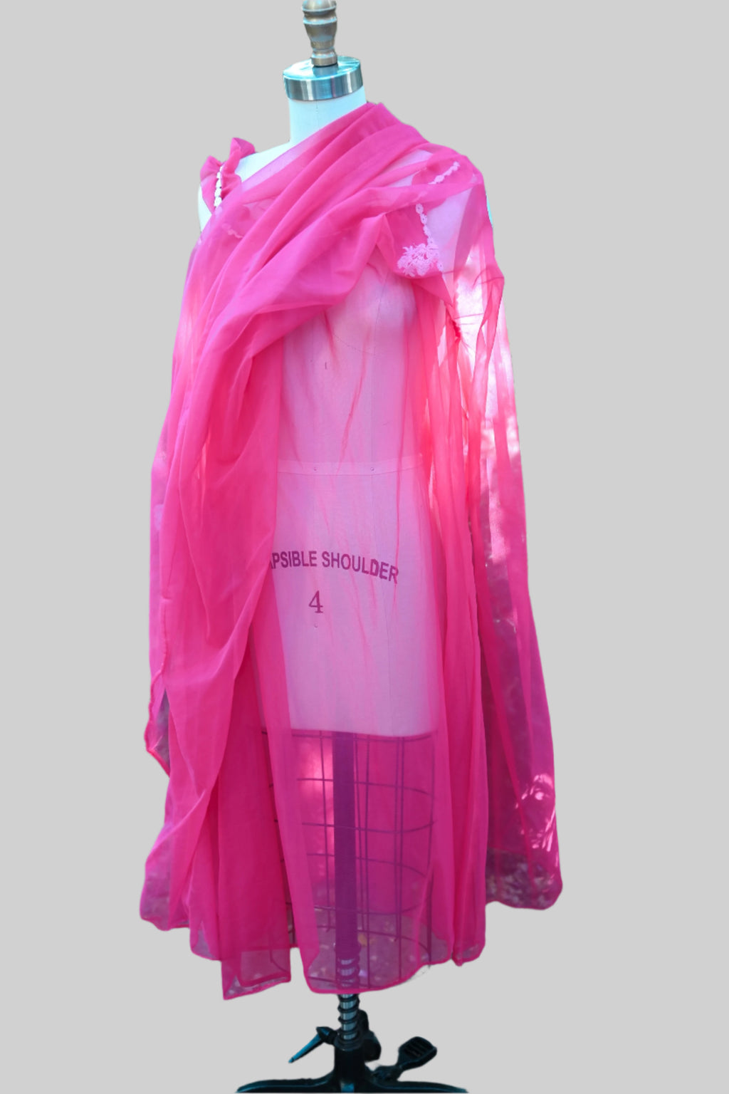 Dress form measurements: Size 4, Bust 33 ½”, Waist 25”, Hips 34 ¾”