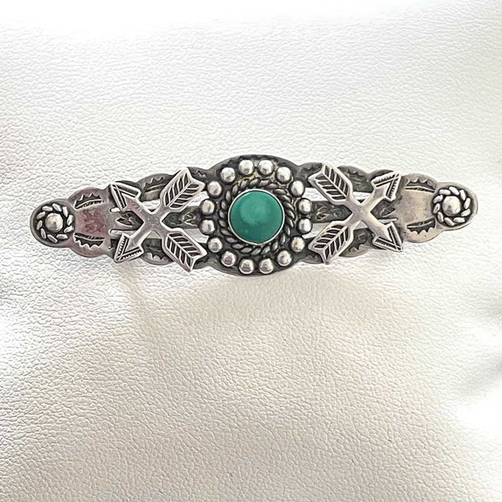 Vintage sterling silver turquoise stone Fred Harvey era brooch.