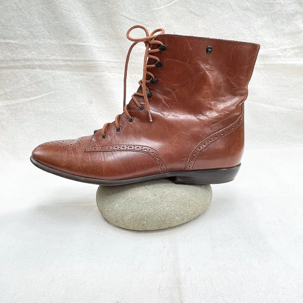 SOLD Vintage 80s Lace Up Granny Ankle Boots, Wingtip Oxford Booties Etienne Aigner