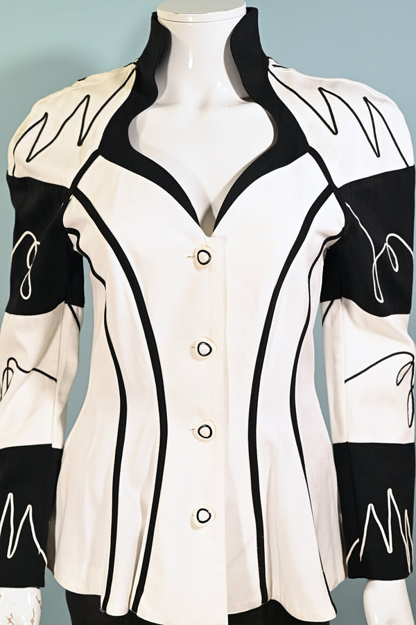 SOLD Vintage 80s Black/White Post Modern Blazer, New Wave Peplum Jacket S