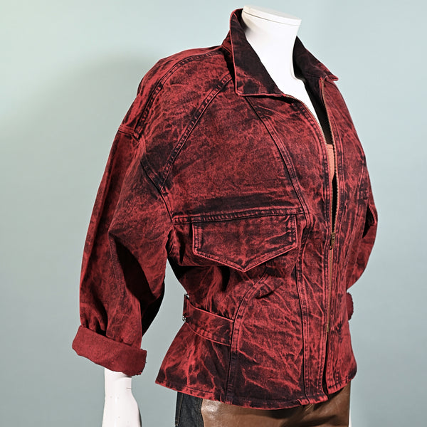 SOLD Vintage 80s Denim Jacket, Acid Washed Red/Black Overdyed by IIT M