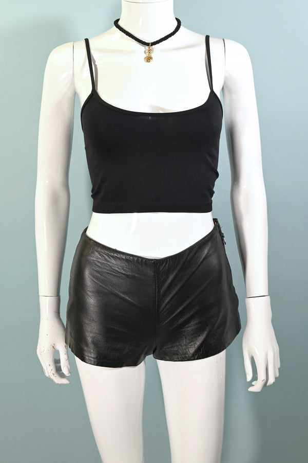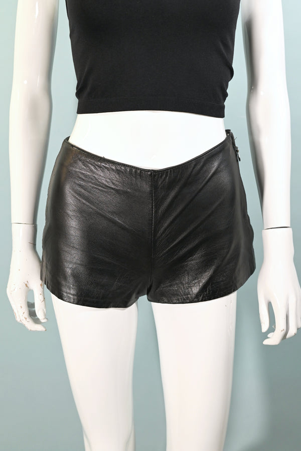 SOLD Vintage 80s/90s Black Leather Biker Shorts, Size 0 XXS