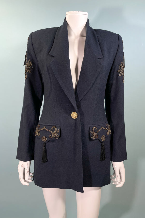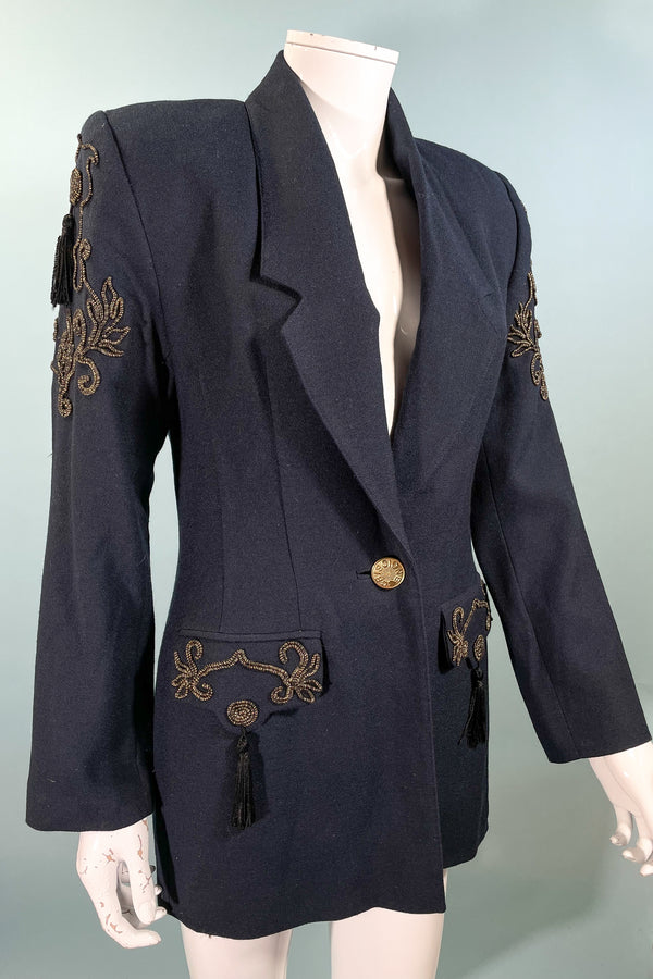 SOLD Vintage 80s Navy Wool Blazer Tassels & Soutache Trim XS