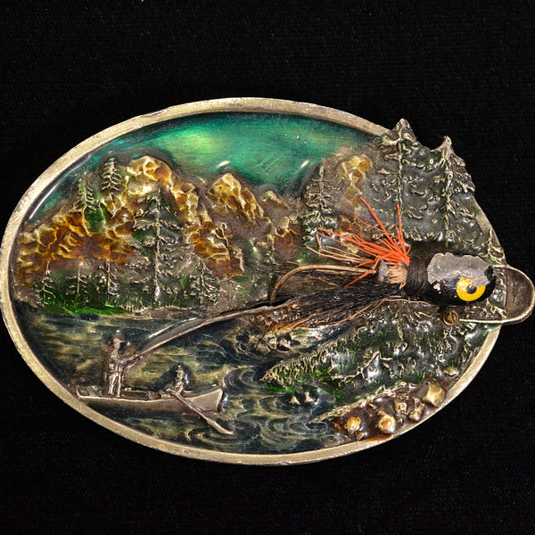 SOLD Vintage 80s Bergamot Brass Works Fishing Fisherman Lure Kitsch Belt Buckle