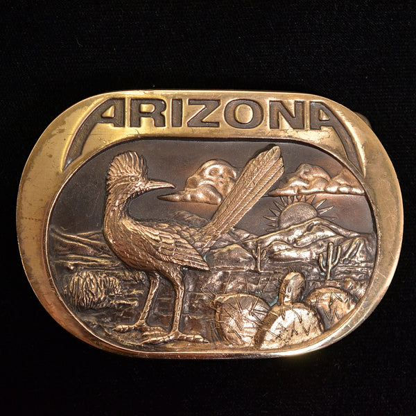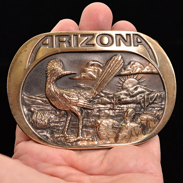 SOLD Vintage 80s Arizona Belt Buckle, Bronze Dimensional Buckle 117.2 Grams