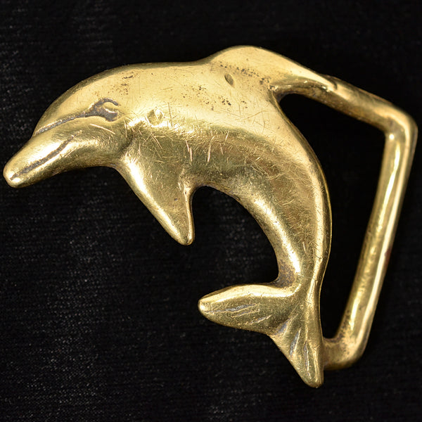 SOLD Vintage 70s Trinity Solid Brass Jumping Dolphin Belt Buckle