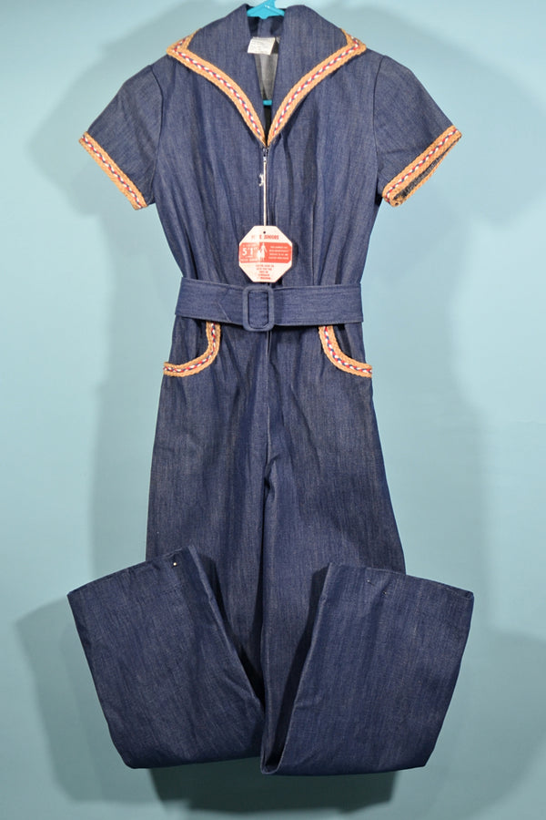 SOLD Vintage 70s Unworn Denim Jumpsuit Belt, Junior Petite XXS