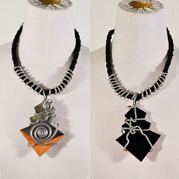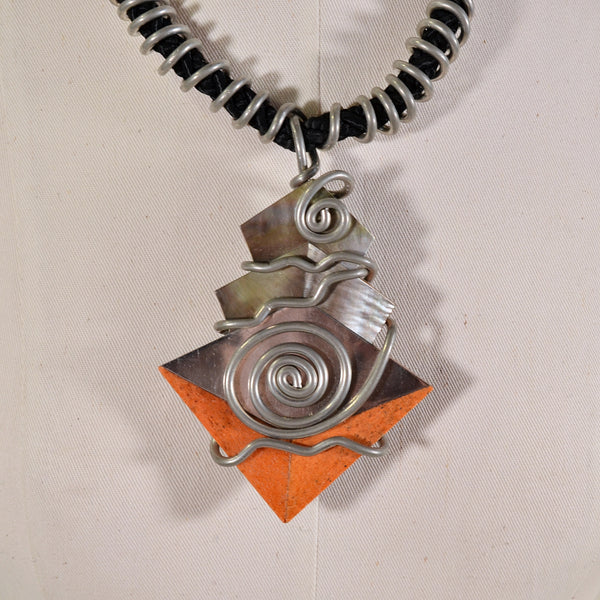 SOLD Vintage 80s Memphis Artisan Chunky Pendant Necklace, Brutalist Post Modern