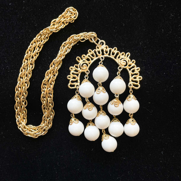 SOLD Vintage 70s Waterfall Pendant Necklace, Gold Filigree Details Costume Jewelry