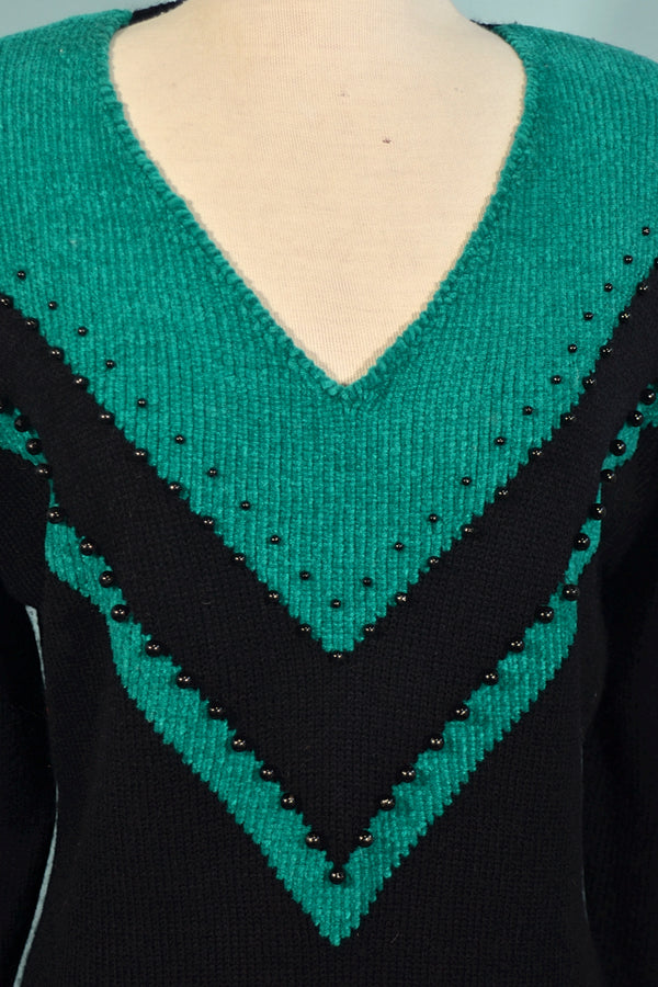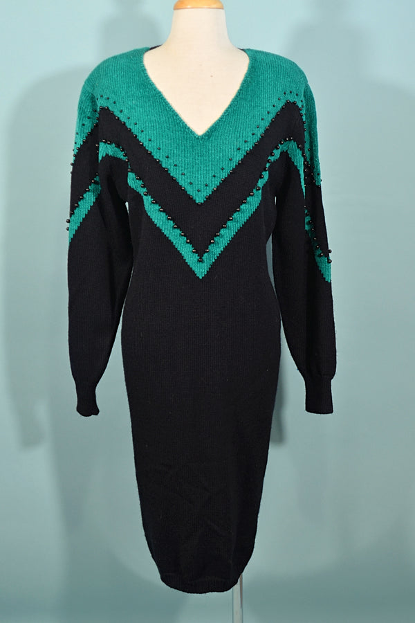 SOLD Vintage 80s Black Knit Dress with Beads