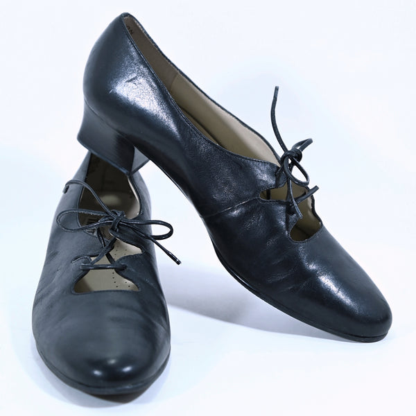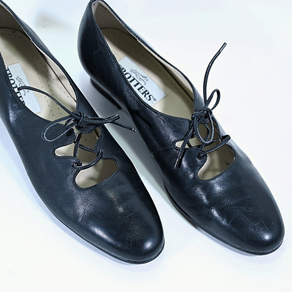 SOLD Vintage 90s Black Lace Up Mary Janes, Y2K Flats, Dark Academia 9N