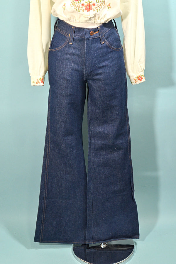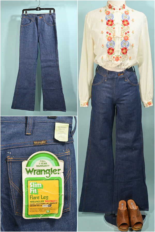 SOLD Vintage 70s Wrangler Slim Fit Flare Leg Bell Bottom Denim Jeans, UNWORN w/original Tags 28x32