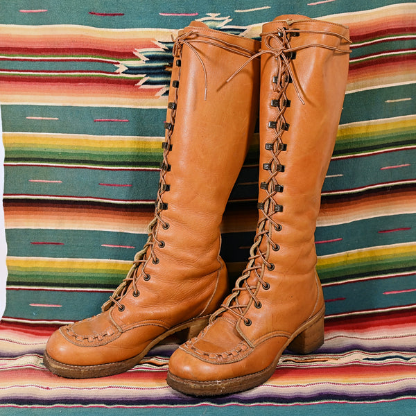SOLD Vintage 70s Zodiac Lace Up Boots, 60s Granny Boots 8M