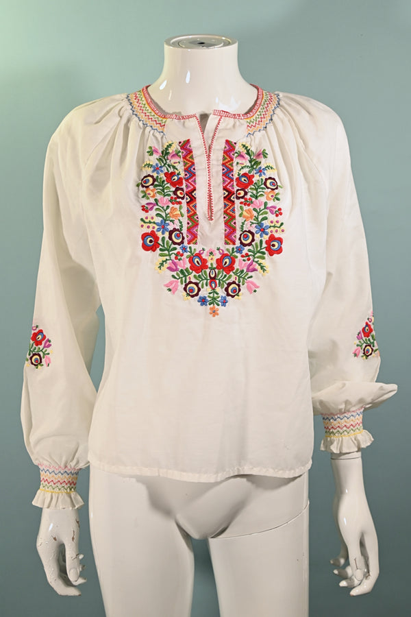 SOLD Vintage Embroidered Peasant Blouse, Penny Lane Bohemian Hippie Top S