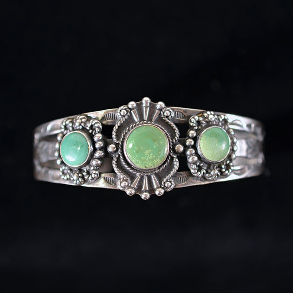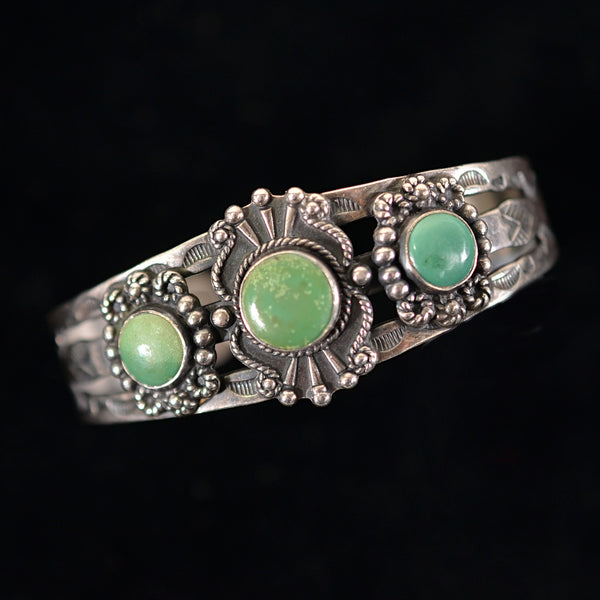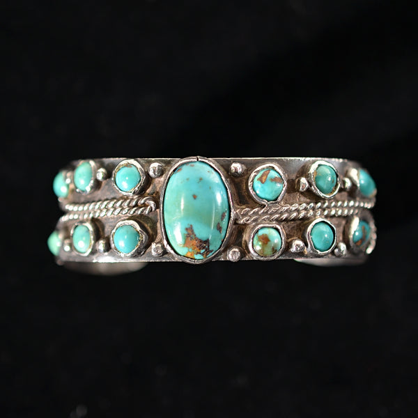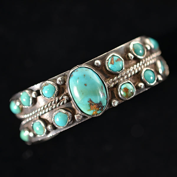 SOLD Vintage Fred Harvey Era Silver Turquoise Cluster Bracelet, 28.8 Grams