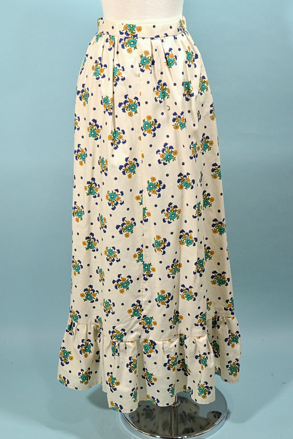 SOLD Vintage Floral Print Maxi Skirt, Bohemian Cottagecore Prairie Festival Skirt S