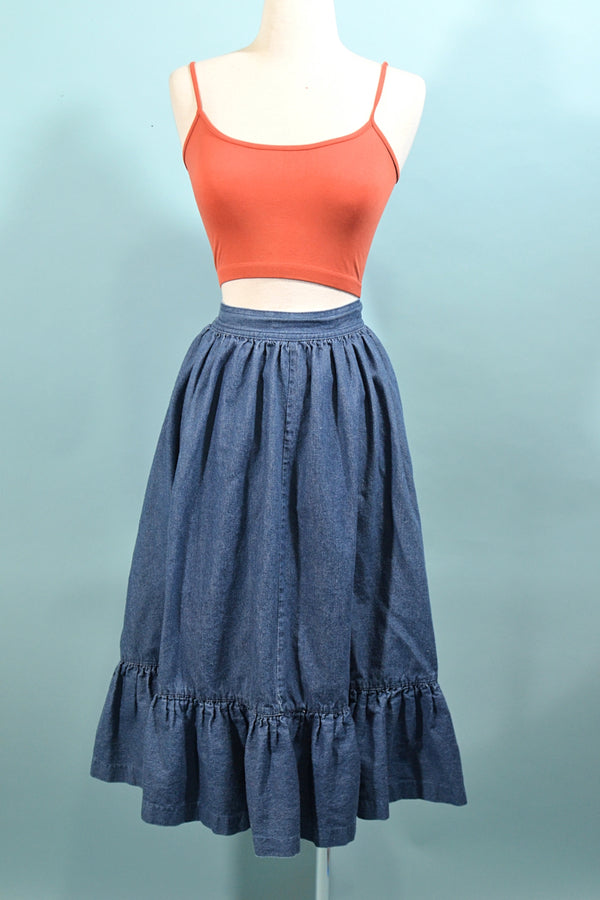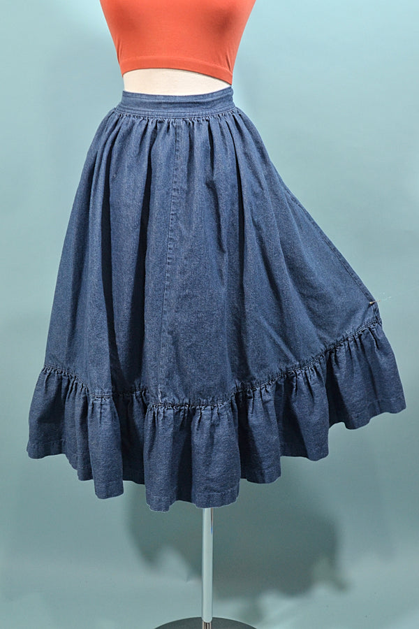 SOLD Vintage Denim Prairie Skirt, Country Western Cottagecore Skirt M
