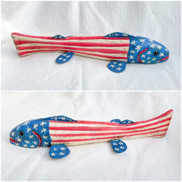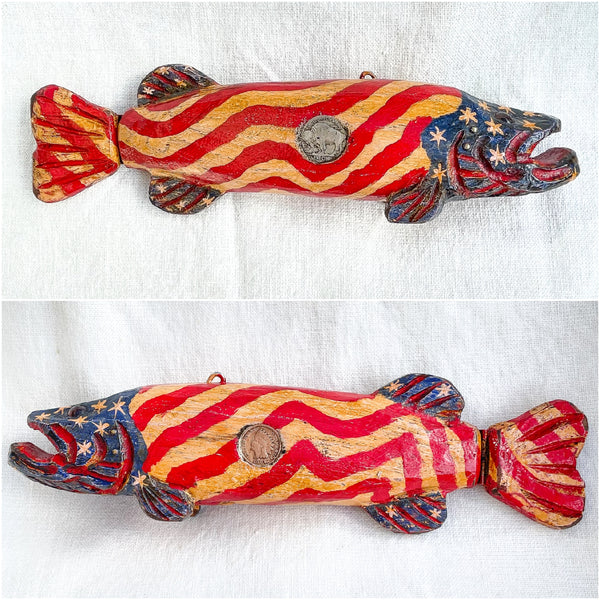 SOLD Vintage DFD Duluth Fish Decoy, Flag Fish Decoy, David Earl Perkins