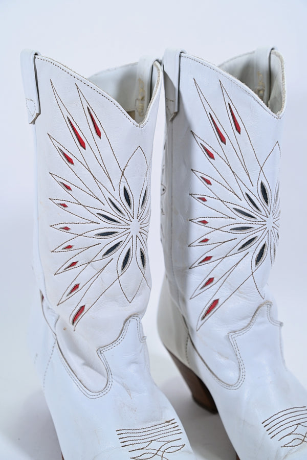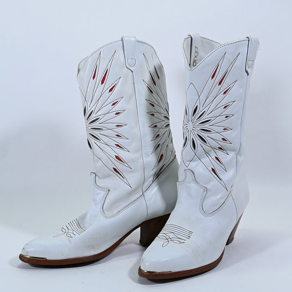 SOLD Vintage Dingos White Leather Western Boots, Southwestern Cowboy Boots 8M