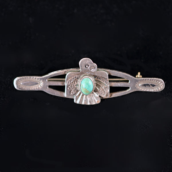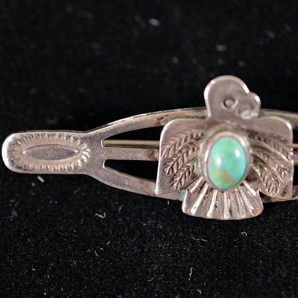 SOLD Vintage Fred Harvey Era Thunderbird Brooch, Silver Turquoise Small Pin 4.9 Grams