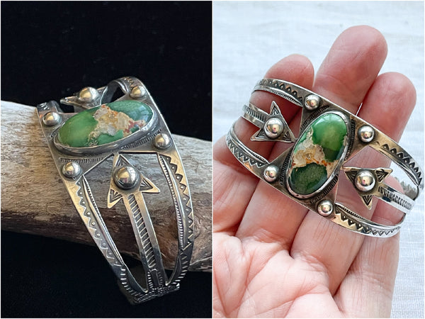 SOLD Vintage Fred Harvey Era Silver Turquoise Cuff Bracelet 24.6 G