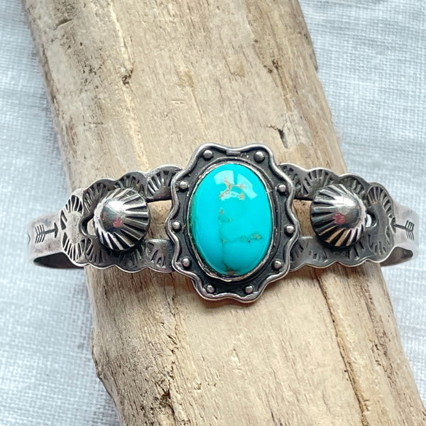 SOLD Vintage Fred Harvey Era Sterling Silver Turquoise Bracelet