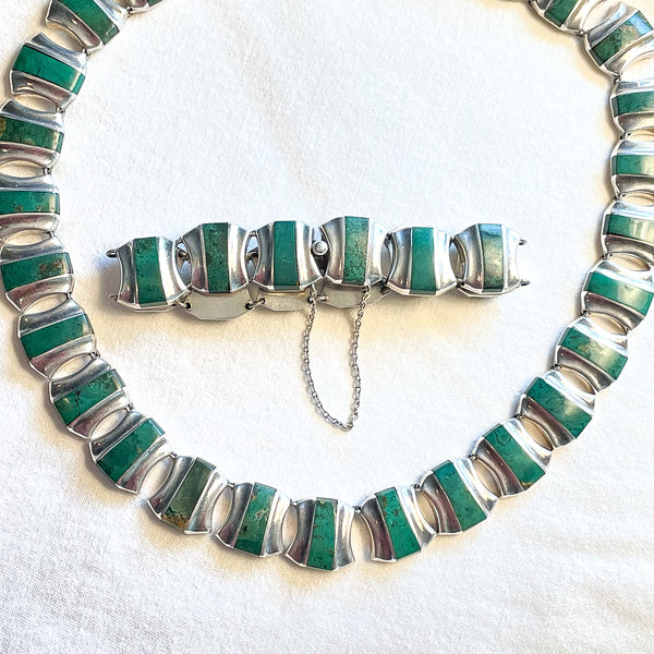 SOLD Vintage Enrique Ledesma Necklace Bracelet Set,1950s Taxco Sterling
