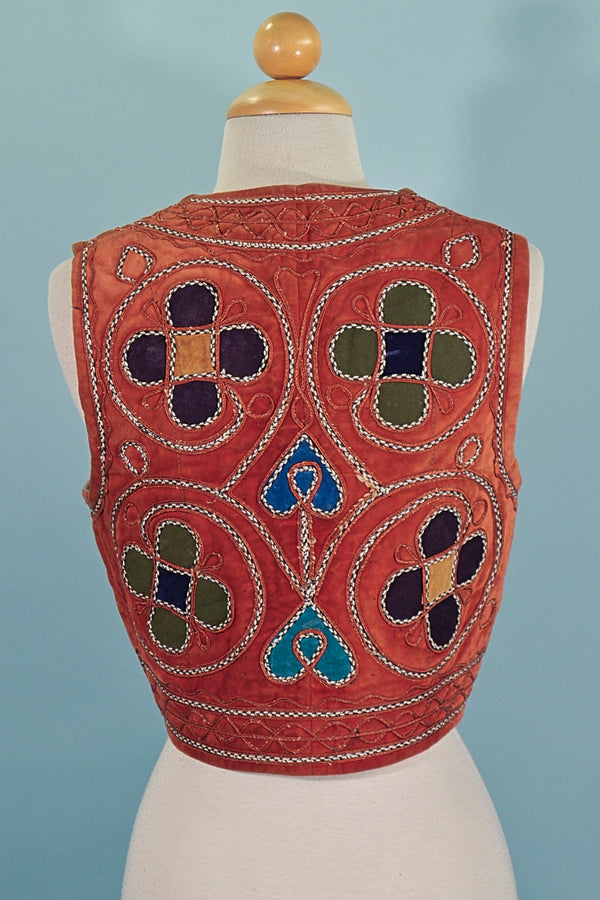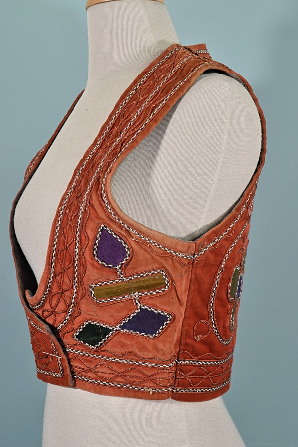 SOLD Vintage Ethnic Velvet Afghani Vest, Patchwork Applique