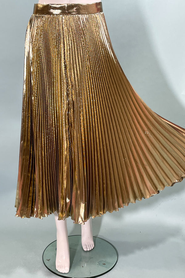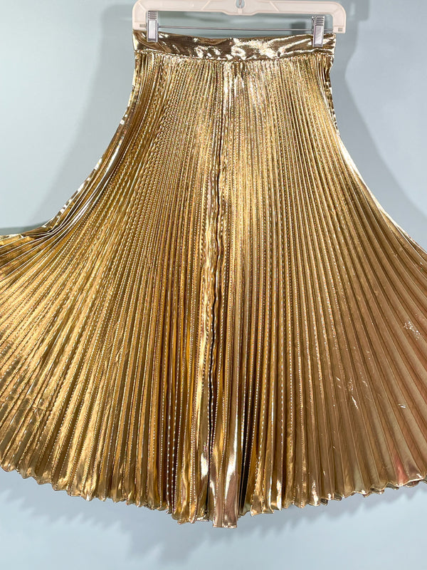 sold Vintage Gold Lame Pleated Midi Skirt, Deadstock + Tags, Partique SZ 8/26" W