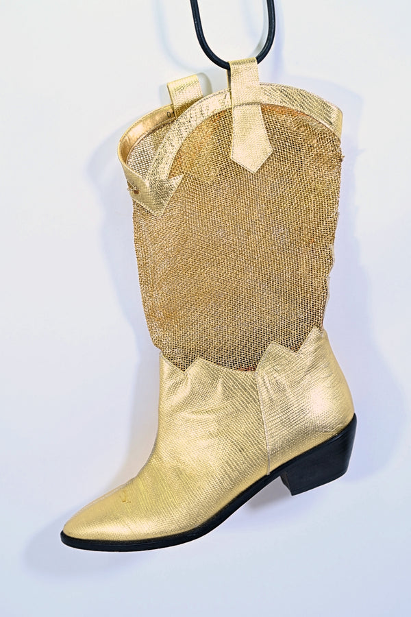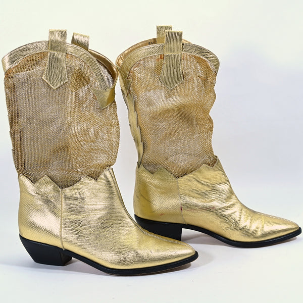 SOLD Vintage Gold Mesh Faux Reptile Slouchy Western Boots Size 6.5
