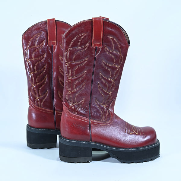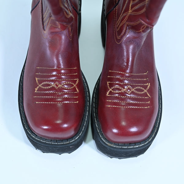 SOLD Vintage John Fleuvog Cowboy Boots, 90s Y2K Red Leather Platform Boots