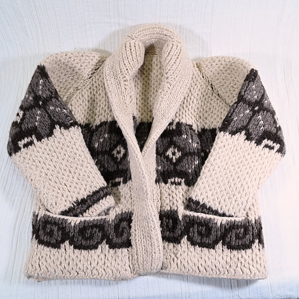 SOLD Vintage Kids Cowichan Hand Knit Cardigan Sweater, 60s/70s Mexican Sweater