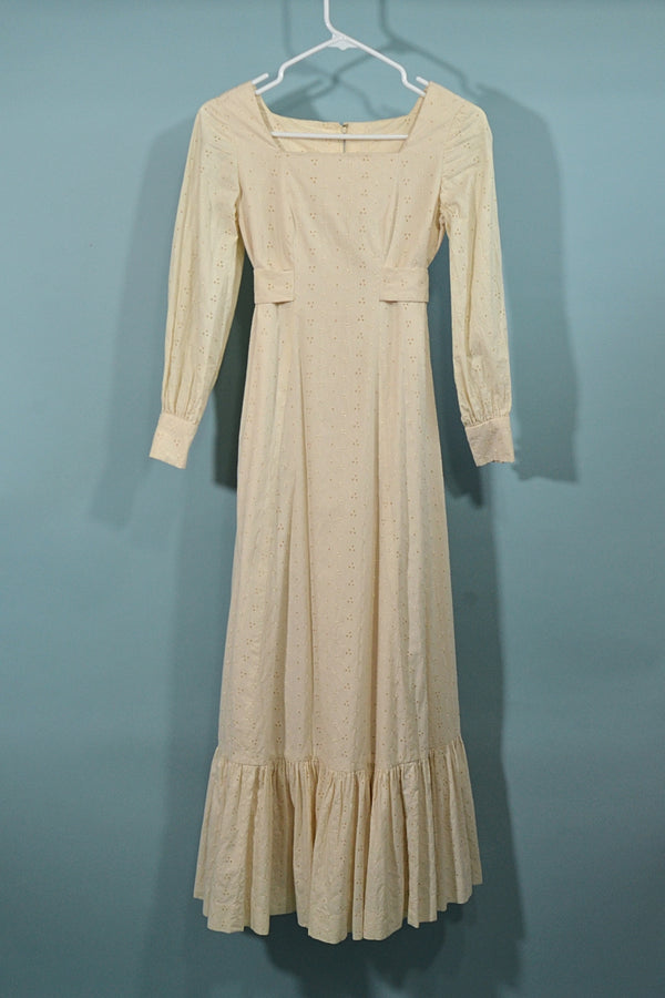 SOLD Vintage Girl's Prairie Eyelet Lace Maxi Dress
