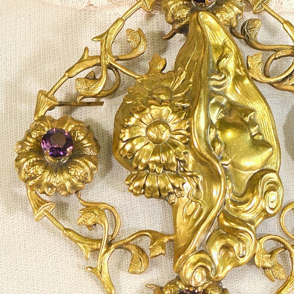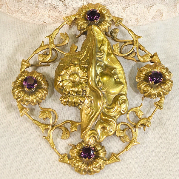 SOLD Vintage Joseff of Hollywood Victorian Style Brooch, Nouveau Lady in Hat 4" H