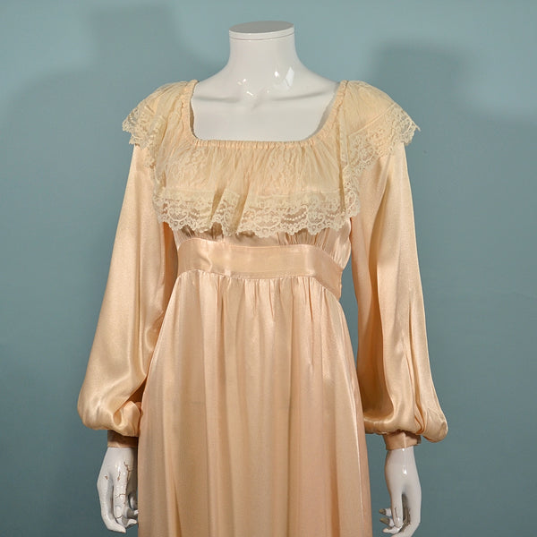 SOLD Vintage Gunne Sax Ruffle Prairie Maxi Dress, Peach Party Hippie Wedding Dress 9/S