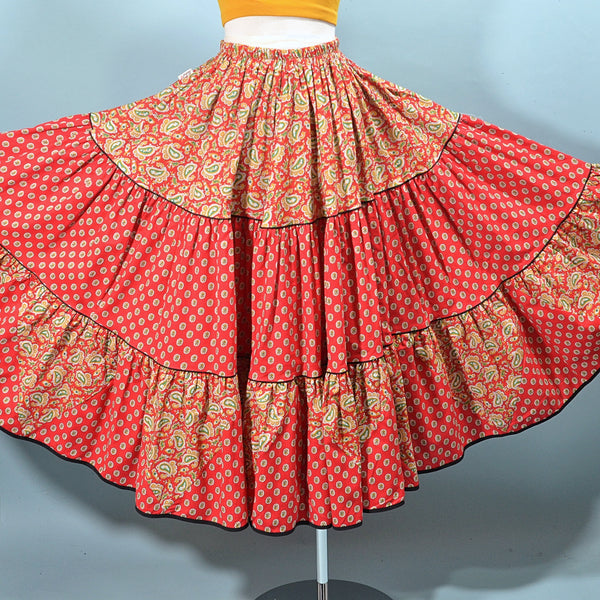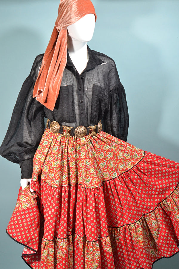 SOLD Vintage Indiennes Bohemian Tiered Gypsy Midi Skirt, S/M