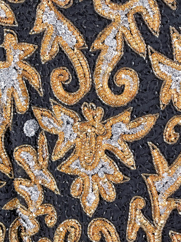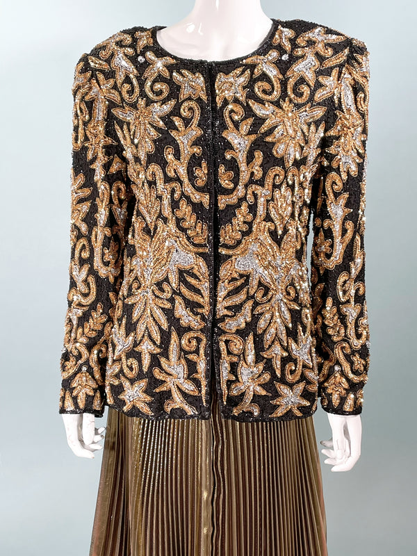 SOLD VTG 80s Laurence Kazar Black/Gold/Silver Heavily Beaded Sequin Jacket L