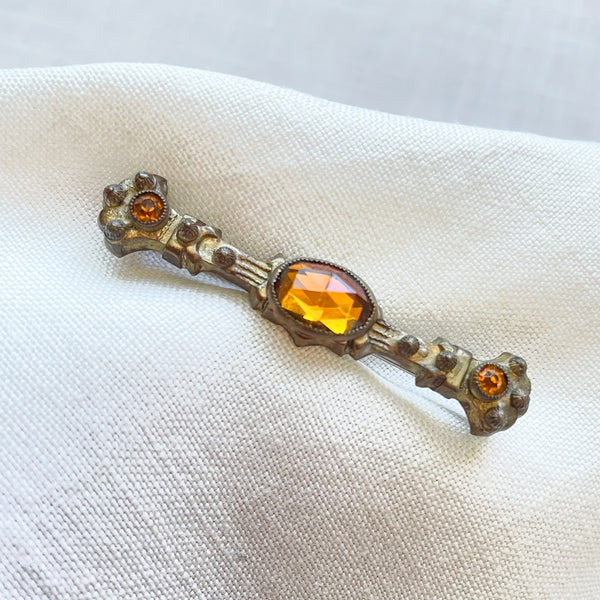 SOLD Vintage/Antique Edwardian/Victorian Brooch, Amber Color Glass Stones