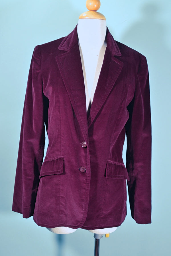 Vintage 70s Burgundy Velvet Blazer Jacket S