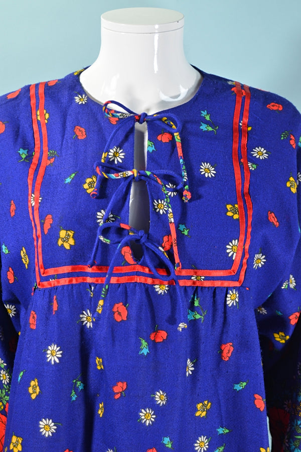 Vintage 60s Boho Blue Floral Print Tent Dress, Mindy Malone M