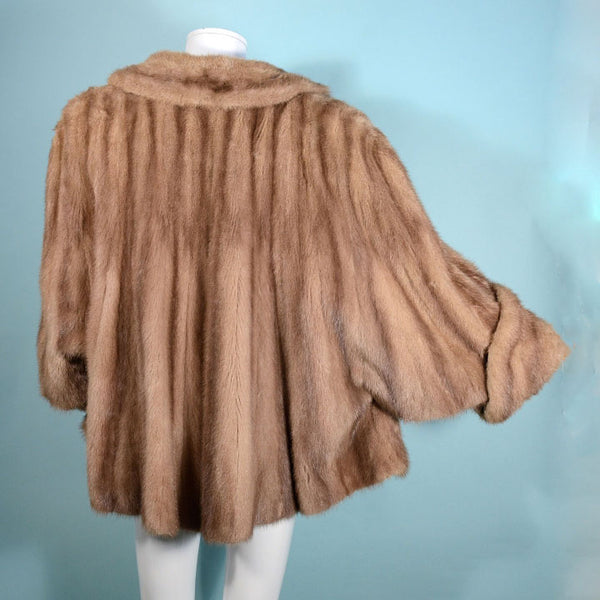 Vintage 40s Mink Capelet Jacket, Batwing Sleeves Shawl Collar