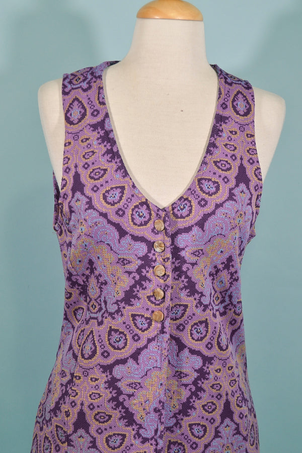 Vintage 60s Psychedelic Tunic Top, Purple Paisley Hippie Vest S