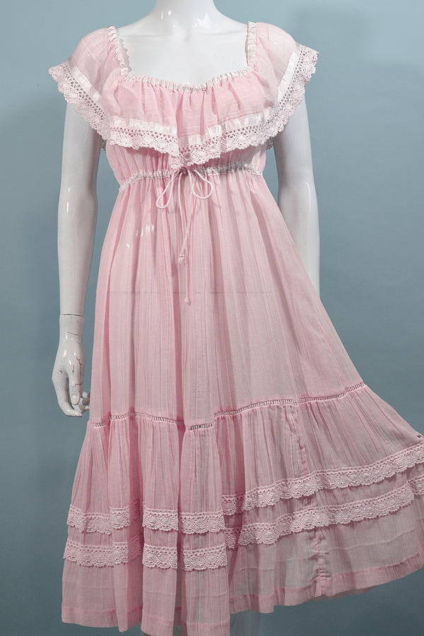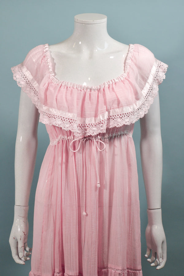 SOLD Young Edwardian Pink Ruffle Peasant Dress S/M