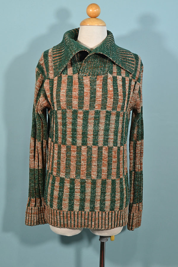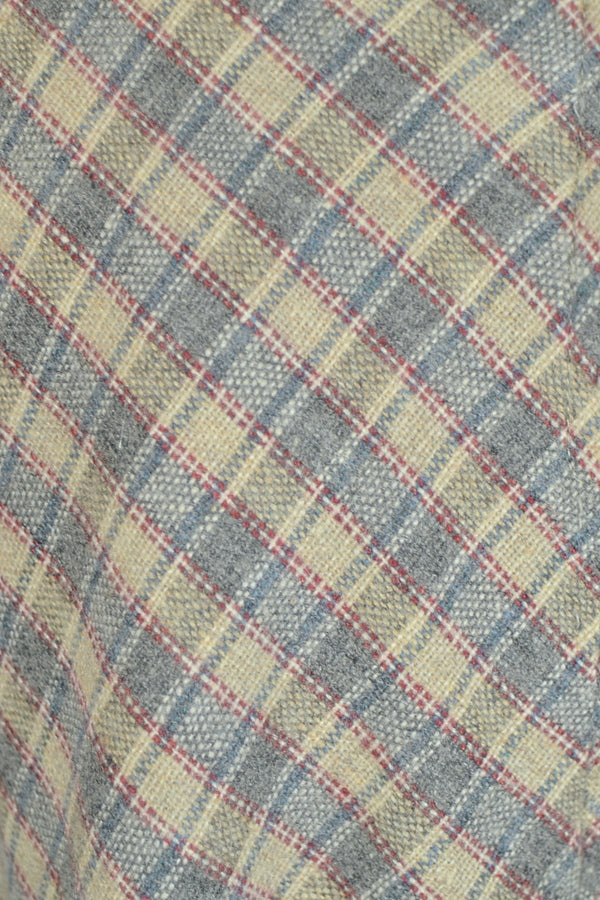 Vintage 70s Grey/Burgundy Plaid Tweed Midi Skirt S