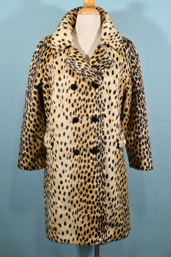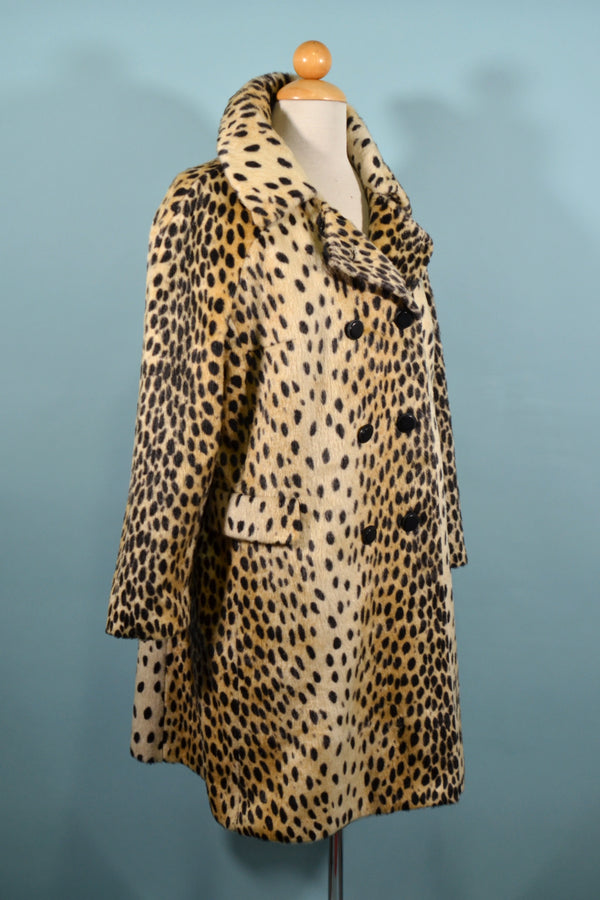 Vintage 60s 'Safari' Faux Cheetah Coat, Sportowne La France Leopard Coat S/M